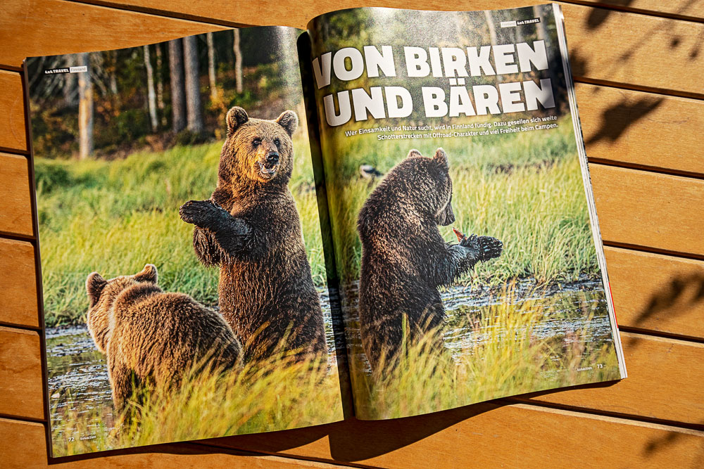 In der November/Dezember Ausgabe der 4x4 action berichten wir im Artikel "Von Birken und Bären" auf 12 Seiten über unsere Erlebnisse in Finnland. Es ist immer ein schönes Gefühl, die eigenen Fotos abgedruckt zu sehen, vor allem wenn es sich um ein Thema und Land handelt, das uns so am Herzen liegt wie Finnland.