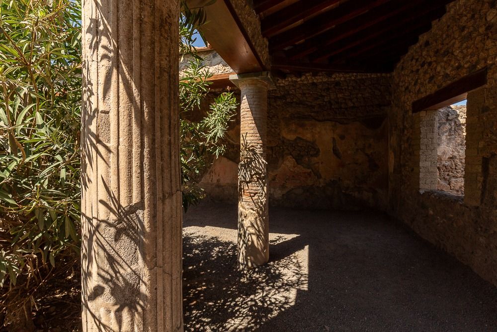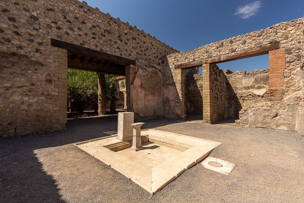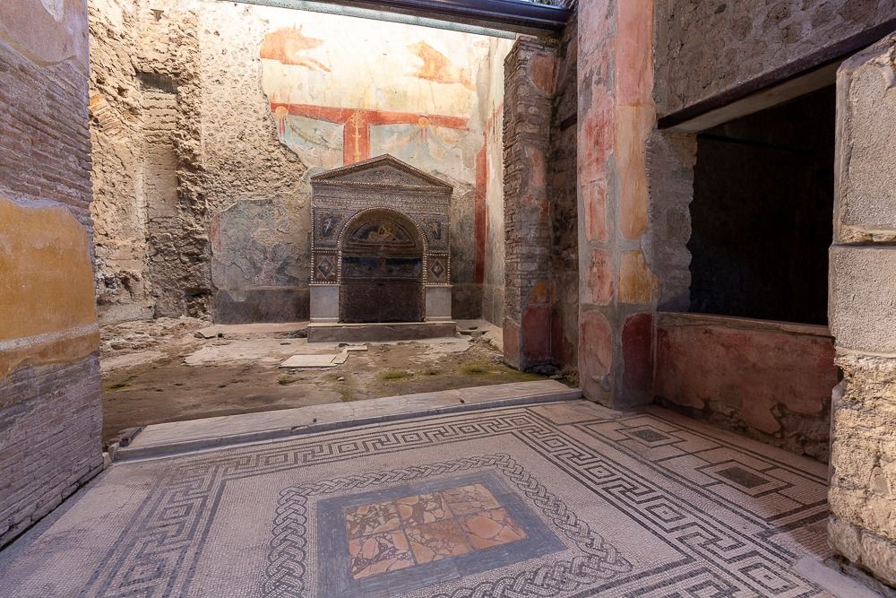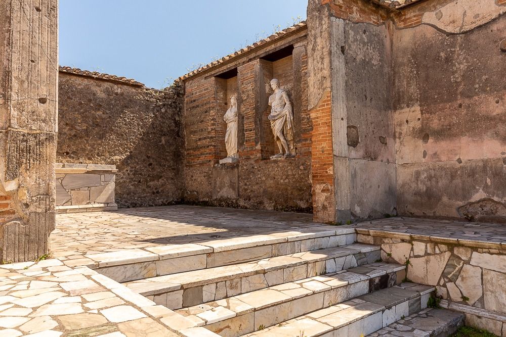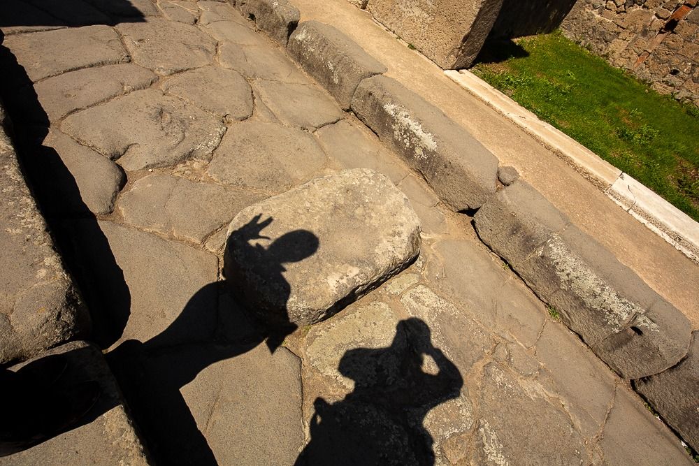 Zunächst ist es gar nicht so leicht, sich vom Zauber Pompejis mitreißen zu lassen, dazu sind hier einfach zu viele Besucher. Der Zugang ist bereits limitiert, aber dennoch wimmeln die mit groben Steinen gepflasterten Gassen vor Schulklassen und Selfiesticks und Geschwätz. Ob an Festtagen auf dem Forum genauso viel los war wie heute Vormittag? Als wir dann aber immer die Straßen nehmen, die menschenleer sind, und uns viel Zeit lassen, entdecken wir überall wunderbare Details. Hier ein Mosaik mit Tierdarstellungen, da eine gut erhaltene Villa mit bunten Fresken an den Wänden, hier eine Taverne mit großen, in die steinerne Theke eingelassene Amphoren, da ein Freudenhaus mit sehr expliziten Darstellungen als Wandschmuck.