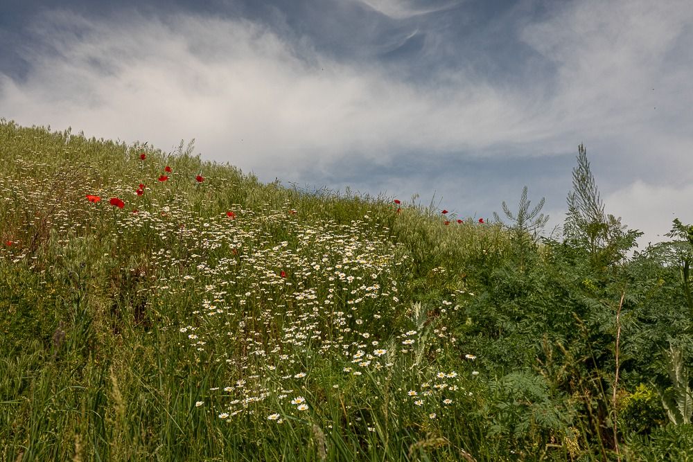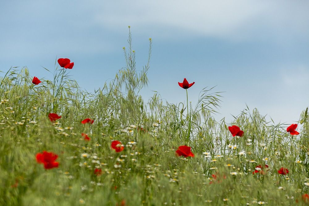 Es ist fast unwirklich, wieder hier zu stehen. Als wäre ich wieder zehn Jahre alt und würde mich über die Wärme des Frühlings freuen, über die gleißend hellen Sonnenstrahlen und die Zeit draußen mit den Nachbarskindern. Der Boden ist trocken und an manchen Stellen zu großen Schollen aufgeplatzt, flach wachsende Pflanzen krallen sich darin fest. Auf der Brachfläche hinter dem Friedhof strecken leuchtend rote Klatschmohnblüten und allerhand Gräser ihre Köpfe Richtung Licht.