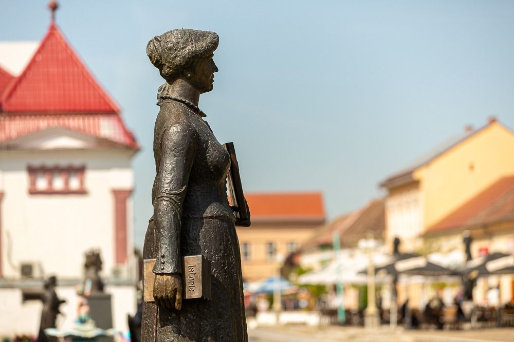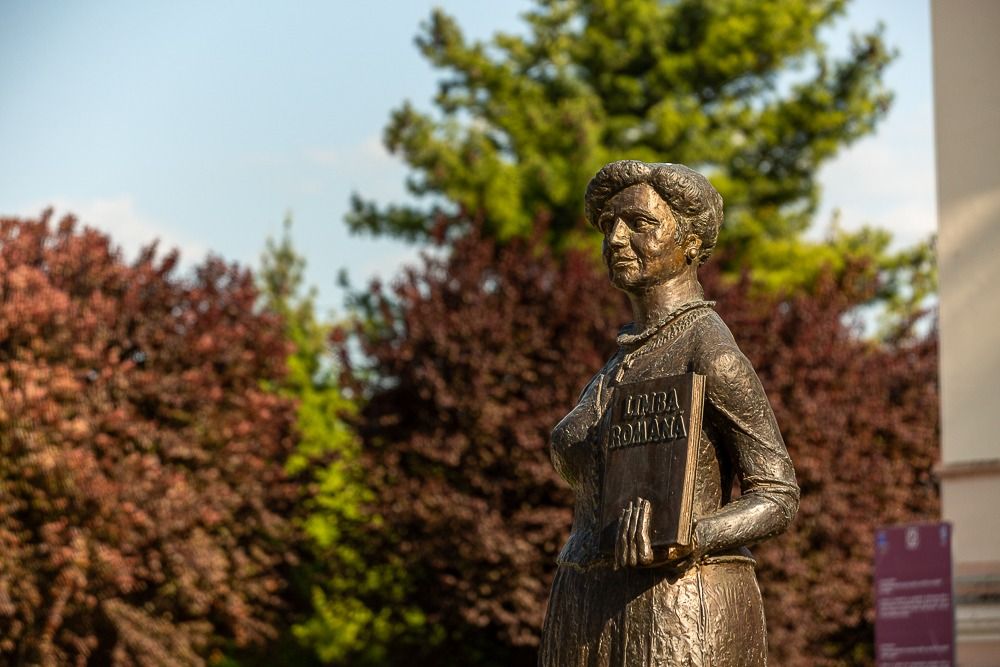 Ihnen gegenüber schaut Emilia Lungu-Puhallo, ein Geschichtsbuch in der Hand, mit festem Blick Richtung Rathaus, auf all die Herren, denen Gedenkstatuen davor die Ehre erweisen. In Sânnicolau Mare geboren, gründete die Lehrerin 1872 hier die erste Frauenorganisation, und zwei Jahre später im nahen Ort Izvin die erste Schule für Mädchen in der Region.